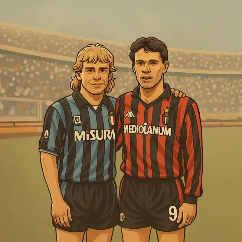 Inter were rebuilding, and Klinsmann was brought in to replace Argentine striker Ramón Díaz and play alongside ageing Aldo Serena. He joined fellow Germans Lothar Matthäus and Andreas Brehme, forming a Teutonic trio that brought order, discipline, and quality to the Nerazzurri. The German trio quickly became the backbone of a team determined to rival Arrigo Sacchi’s Milan and their own trio: the Dutch stars Van Basten, Gullit and Rijkaard.